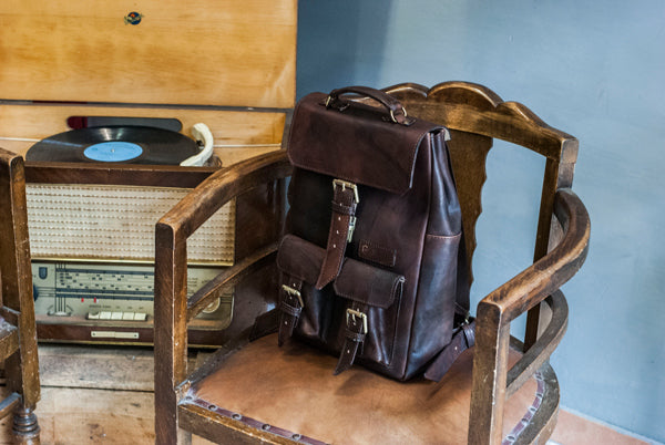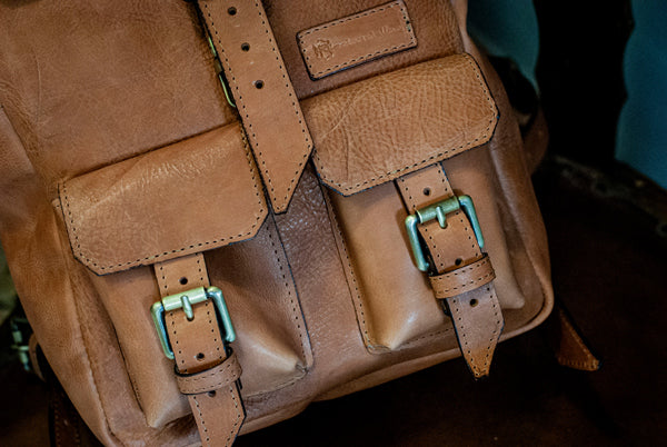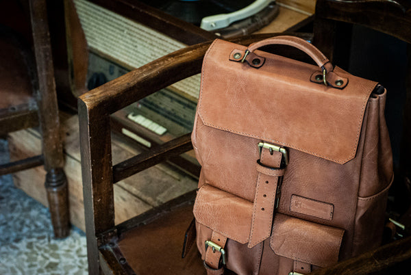 Il marchio Pelletteria Ricciardella impresso sull’etichetta in pelle cucita sul fronte dello zaino è sinonimo di autenticità e ottima fattura.